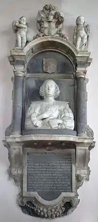Judith's second husband Thomas II Ivatt erected a monument with a bust in white marble of his wife in Combe Martin church, positioned on the north wall of the north aisle chapel above the vestry door. This is similar in design to the contemporary monument to Penelope Noel in Chipping Campden Church, Gloucestershire. It is inscribed thus: