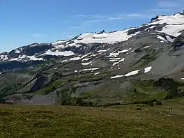 According to the A. W. Kuchler U.S. Potential natural vegetation types, Mount Rainier National Park has an Alpine Meadows & Barren, or Alpine tundra (52) potential vegetation type with an Alpine Meadow (11) potential vegetation form.[17] The park's vegetation is diverse, reflecting the varied climatic and environmental conditions encountered across the park's 12,800-foot elevation gradient. More than 960 vascular plant species and more than 260 nonvascular plant species have been identified in the park.[5]