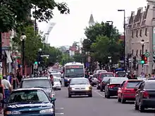 The western section of the avenue is the principal artery of the Plateau,[1][2] forming the southern border of the Mile End neighbourhood. Notable businesses on the street include the restaurants La Binerie Mont-Royal[3] and Beauty's.[4] The Mont-Royal metro station is located at the corner of Mount Royal Ave. and Rivard St., at Place Gérald-Godin.