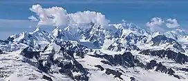 Mount Steller is a peak at the far eastern end of the Chugach Mountains of Alaska, United States. It is notable for its isolated location among extensive icefields, and for its large rise above local terrain. For example, it rises 8000 feet (2440 m) above the Bering Glacier to the south in about 4 horizontal miles (6.4 km).