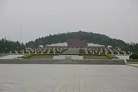 ![]() The Revolutionary Martyrs' Cemetery (foreground) is located on the west side of Taesŏngsan | |