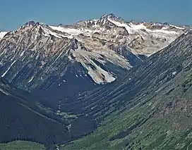 Mount Thiassi is a 2,772-metre (9,094-foot) mountain summit located in the Thiassi Range of the Coast Mountains, in southwestern British Columbia, Canada. It is the third-highest point in the Thiassi Range.[3] Mount Thiassi is situated 56 km (35 mi) northwest of Pemberton, and 6.9 km (4 mi) south-southwest of Mount Vayu, which is its nearest higher peak. Precipitation runoff from the peak and meltwater from unnamed glaciers on its slopes drain into tributaries of the Lillooet, Bridge, and Hurley Rivers. The first ascent of the mountain was made in 1965 by Dick Culbert and Alice Purdey. The mountain's name was submitted by this first ascent party to commemorate Thiassi, the god of storms according to Norse mythology.[4] The name was officially adopted June 22, 1967, by the Geographical Names Board of Canada.[2]