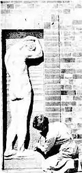 Sculptor Daphne Mayo was commissioned to create three relief works, Grief and Hope for the front facade and one of a boy scattering seed, representing the continuation of life, for the original columbarium.[7]