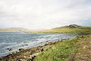![]() Mount Tumbledown, Two Sisters, and Wireless Ridge, as seen from Stanley Harbour. | |||||||||