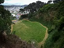 ![]() Mount Victoria and the town belt from the Basin Reserve The Mount Victoria Lookout is situated within the Town Belt, and offers panoramic views of the greater Wellington area.[7] Not far to its east is the Mount Victoria Radio Tower, which was Wellington's main radio and television mast from 1927 until 1965, when the larger and more powerful Mount Kaukau transmitter opened. |