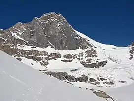 The first ascent was made in 1925 by a Japanese team consisting of S. Hashimoto, H. Hatano, T. Hayakawa, Y. Maki, Y. Mita and N. Okabe. They were guided by Hans Fuhrer, H. Kohler and J. Weber.[1]