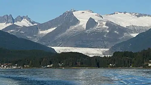 Mount Wrather is a 5,968-foot (1,819 m) mountain summit located in the Boundary Ranges, in the U.S. state of Alaska. The peak is situated within Tongass National Forest, immediately east of the Mendenhall Glacier, 12 mi (19 km) north of Juneau, Alaska, and 9 mi (14 km) north of Juneau International Airport. Although modest in elevation, relief is significant since the mountain rises up from sea-level at Auke Bay in less than nine miles. The mountain's name was officially adopted in 1968 by the USGS to honor William Embry Wrather (1883–1963), the 6th Director of the United States Geological Survey from 1943 to 1956.[2]