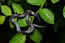 The mountain slug snake (Pareas margaritophorus), also known as the white-spotted slug snake, is a small, harmless species of snake that is rather common in South, South-East, and East Asia, and feeds on small invertebrates.