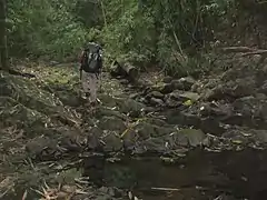 A 38.3 kilometres (23.8 mi) trail traversing the mountains of the protected landscape has been mapped and established by a five-man expedition team in 2014, to which the trail starts at Barangay Ramirez of Magallanes, Cavite passing through Mataas na Gulod, Dos Picos, Kalanggaman, and ends at Mount Palay-Palay towards the exit at Barangay Papaya in Nasugbu, Batangas.[5] The trail passes through Anino River,[11] a high-elevation river between the mountains of Dos Picos, Kalanggaman and Mataas na Gulod.[5]