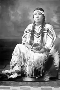 Christine Quintasket or Hum-ishu-ma, better known by her author name Mourning Dove,[1][note 1] was a Native American (Okanogan (Syilx), Arrow Lakes (Sinixt), and Colville) author best known for her 1927 novel Cogewea, the Half-Blood: A Depiction of the Great Montana Cattle Range and her 1933 work Coyote Stories.