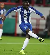 Both Marega and Marítimo goalkeeper José Sá were on the cusp of a move to Sporting CP in January 2016, but FC Porto signed the pair on contracts lasting to 2020; Marega's buyout clause was set at €40 million.[6] He made 13 appearances in his first campaign at the Estádio do Dragão – mostly as a substitute – and scored once in a 2–0 home win over Gil Vicente in the Taça da Liga on 2 March.[7] His early poor performances drew vocal criticism from some Porto fans, and he took training from a friend on how to become mentally resilient.[4]