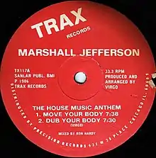 - The House Music Anthem (label). Marshall Jefferson. Trax Records. 1986. TX117.