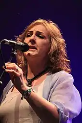 Moya Brennan (born Máire Philomena Ní Bhraonáin[lower-alpha 1] on 4 August 1952),[2] also known as Máire Brennan, is an Irish folk singer, songwriter, harpist, and philanthropist. She is the sister of the musical artist known as Enya. She began performing professionally in 1970 when her family formed the band Clannad.[3] Brennan released her first solo album in 1992 called Máire, a successful venture.[4] She has received a Grammy Award from five nominations and has won an Emmy Award.[5][6] She has recorded music for several soundtracks, including Titanic, To End All Wars and King Arthur.[7][8]