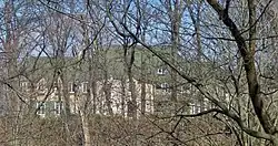 The Fred L. Mandel Jr. House was built on five lots (and part of a sixth) in the Highland Park Syndicate Subdivision in Highland Park, Illinois. This area was platted on March 29, 1926, when it was owned by the Bard family. Francis N. Bard built a bridge across a ravine in September 1927, allowing development on the other side. Some time in the next eight years, the property was sold to their neighbors, the Buckley family. On July 30, 1937, Fred L. Mandel Jr. purchased these lots from Buckley. He contracted his father-in-law, architect David Saul Klafter, and contractor Joseph T. Carp to design a French Eclectic house for approximately $127,900.[2][3]