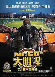 Mr. Go (Korean: 미스터 고; Hanja: 大明猩; RR: Miseuteo Go) is a 2013 South Korean sport-comedy film written and directed by Kim Yong-hwa based on Huh Young-man's 1984 comic The 7th Team (Korean: 제7구단).[1][2] About a gorilla who becomes a baseball superstar and his 15-year-old female manager, it stars Xu Jiao and Sung Dong-il.[3][4] Mr. Go was the first South Korean film to be fully shot in 3D.[5] A co-production between South Korea and China, it was released simultaneously in both countries on July 17 and 18, respectively.[6][7]