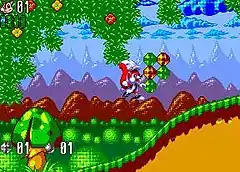 Mr. Nutz: Hoppin' Mad features fast-paced sidescroller platforming which takes after Sega's early-'90s Sonic games.[3][4] Mr. Nutz primarily attacks by jumping, and can run and roll through the environment at high speed. He can also fly by collecting feathers. An exploration-focused world map connects the platforming levels, with mazes, mild puzzles, items, and NPCs to converse with.[3][4][2]
