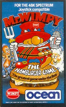 Mr. Wimpy was a promotional platform game released by Ocean Software in 1984 for the Oric 1, ZX Spectrum, BBC Micro, and Commodore 64. It was a promotional tie with Wimpy restaurants with their logos, company mascots, and theme tunes reproduced.[3] The gameplay is based on the video game BurgerTime.[1]