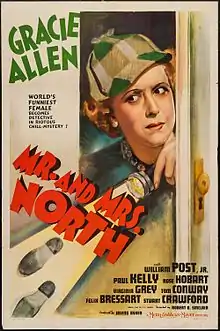 Mr. and Mrs. North is a 1942 American comedy mystery film directed by Robert B. Sinclair, starring Gracie Allen and William Post Jr. as detectives Pam and Jerry North. The screenplay was based on a 1941 Broadway play by Owen Davis, which in turn was based on a series of mystery novels by Frances and Richard Lockridge. Pam North, a dizzy socialite, and her husband Jerry return home from a vacation to find a dead body in their apartment. All the suspects are close friends of the Norths, a fact that encourages Pam to gently interfere in the ongoing murder investigation conducted by Lt. Weigand (Paul Kelly).[1]