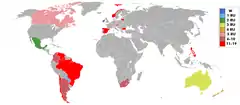 Countries which sent delegates and results.