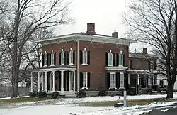 It is credited to architect Archimedes Russell and was built in 1870. It is a two-story, brick Italianate style dwelling. It consists of a main block and rear wing with low hipped roofs. It features a full width, one-story front porch and small side porch with chamfered columns.[2]: 3–4