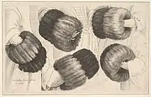 A muff is a fashion accessory for outdoors usually made of a cylinder of fur or fabric with both ends open for keeping the hands warm. It was introduced to women's fashion in the 16th century and was popular with both men and women in the 17th and 18th centuries. By the early 19th century, muffs were used in Europe only by women.[1] It is also reported that the fashion largely fell out of style in the 19th century.