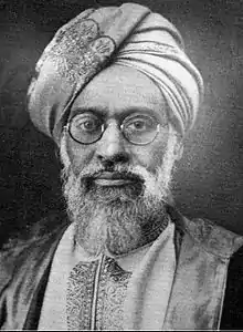 Mufti Muhammad Sadiq (January 11, 1872 – January 13, 1957) was a companion of Mirza Ghulam Ahmad and a Muslim missionary in the United States.[1] Sadiq converted over seven hundred Americans to Islam directly, and over one thousand indirectly.[2][3] His purpose, as a representative of the Ahmadiyya Movement in Islam, was to convert Americans to Islam and to clear general misconceptions about the religion. Something that separated Mutfi Muhammad Sadiq from his contemporaries was his belief in racial integration between all racial and ethnic groups, and not just African Americans.[4][5] He was also important in the movement of trying to unite a multicultural group of Muslim immigrants, from Arabs to Bosnians, to build mosques and have congregational prayers, especially in Detroit and Chicago.[6]