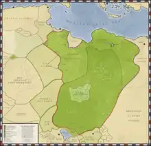 Under the leadership of Al-Mahdi, the Senussi order arrived at the height of their influence and spread, building their Zaouias where water and pasture were available, and spreading south to the Ouaddaï Region and Lake Chad.[3] The Oasis of Kufra became the center of commerce for the desert regions, with caravans coming from the Sahel and the Maghreb. The traders and their caravans took Senussi Islam to remote areas, such as the Darfur and Kanem regions, beyond Saharan North Africa.[5]