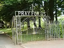 Muirhead was little more than a hamlet before a new road was built just south of Chryston at the end of the 18th century.[6] Muirhead was formerly in the parish of Cadder.[7] Industries connected with Muirhead include coal and fire clay mining, brickmaking and distilling.[8] The New Statistical Account of 1845 reported 40 persons in 9 families at Muirhead.[9] Growth in the village followed the opening of The Garnkirk and Glasgow Railway in 1831.[10] Following the First World War a cenotaph was built in 1923 at Muirhead.[11] A primary school, St. Barbara's[12] on Elmira Road, was opened in August 1933.[13]