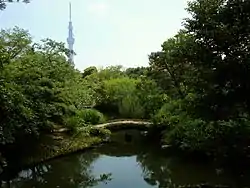 ![]() Mukōjima-Hyakkaen Garden with Tokyo Skytree in the background | |