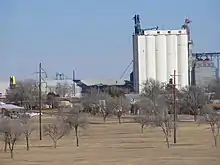 One of the many grain elevators in the area: In the foreground is Muleshoe City Park.