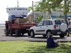 The ferry terminal at Mulifanua wharf is five minutes west of Faleolo International Airport. The government's Samoa Shipping Corporation operates the ferry service, seven days a week, between Mulifanua and Salelologa at the east end of Savai'i island. A one-way trip between the two islands takes about 90 minutes. The ferry usually runs every two hours during the day. There are several small shops selling snacks, and there are always buses and taxis available at the terminal for departures and arrivals.