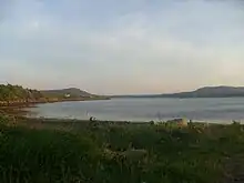 Mulroy Bay is the most convoluted of the marine inlets in north-west Ireland. It is approximately 12 km long in a north-south direction. The entrance to the bay is a narrow embayment leading to a winding entrance channel 10 km in length. This channel varies in width and depth, with three significant narrows only 100–150 m across, where the current reaches maxima of 3-5 knots. It opens into the Broad Water, an open shallow sea lough 8 km from north to south and 2.5 km from east to west, generally less than 20 m in depth and with many small rocky islands and islets.[2][3]