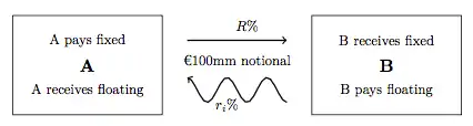 An interest rate swap's (IRS's) effective description is a derivative contract, agreed between two counterparties, which specifies the nature of an exchange of payments benchmarked against an interest rate index. The most common IRS is a fixed for floating swap, whereby one party will make payments to the other based on an initially agreed fixed rate of interest, to receive back payments based on a floating interest rate index. Each of these series of payments is termed a "leg", so a typical IRS has both a fixed and a floating leg. The floating index is commonly an interbank offered rate (IBOR) of specific tenor in the appropriate currency of the IRS, for example LIBOR in GBP, EURIBOR in EUR, or STIBOR in SEK.