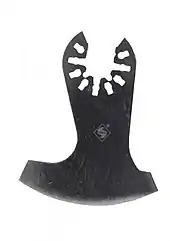 Cutting blades are standard saw blades with various tooth configurations for cutting different material. They are either straight blades with the teeth on the end, allowing the user to "plunge cut" directly into the material they are cutting, or circular blades. Bi-metal blades offer smaller hardened teeth that allow the user to cut soft metals and the popular Japan tooth blades have large teeth that cut wood quickly but cannot cut metal