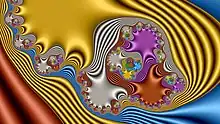 All the above images are rendered using an Escape Time algorithm that identifies points outside the set in a simple way. Much greater fractal detail is revealed by plotting the Lyapunov exponent,[9] as shown by the example below. The Lyapunov exponent is the error growth-rate of a given sequence. First calculate the iteration sequence with N iterations, then calculate the exponent as