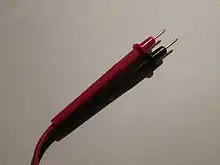 A multimeter can use many different test probes to connect to the circuit or device under test. Crocodile clips, retractable hook clips, and pointed probes are the three most common types. Tweezer probes are used for closely spaced test points, as for instance surface-mount devices. The connectors are attached to flexible, well insulated leads terminated with connectors appropriate for the meter. Probes are connected to portable meters typically by shrouded or recessed banana jacks, while benchtop meters may use banana jacks or BNC connectors. 2 mm plugs and binding posts have also been used at times, but are less commonly used today. Indeed, safety ratings now require shrouded banana jacks.