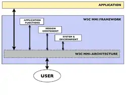 Multimodal Architecture and Interfaces is the specified description of a larger services infrastructure called The Runtime Framework which provides the main functions that a multimodal system can need. This framework is at a higher level of abstraction than the MMI architecture.[2] The MMI Runtime Framework is the runtime support and communication modules of the multimodal system while MMI Architecture is the description and the specification of its main modules, its interfaces and its communication modes.