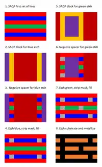 Double patterning lithography was first demonstrated in 1983 by D.C. Flanders and N.N. Efremow.[5] Since then several double patterning techniques have been developed such as self alignment double patterning (SADP) and a litho-only approach to double patterning.[6][7]