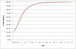 As the MOI increases, the percentages of cells infected with at least one viral particle also increases.[4]