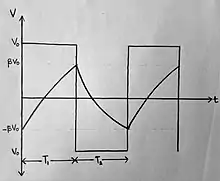 Graph showing the output waveform of the Op-Amp and the waveform formed across the capacitor C.