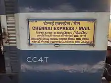 The 22157 / 22158 Mumbai–Chennai Mail is a train belonging to Indian Railways – Central Railway zone that runs between Mumbai Chhatrapati Shivaji Maharaj Terminus & Chennai Egmore in India.