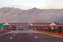 Toll is collected at Khalapur (Pali Phata) (for the Mumbai-Pune direction) and at Talegaon (for the Pune-Mumbai direction). The toll ranges from ₹540 (US$6.80) for private cars, to ₹2,200 (US$28) for multi-axle trailer trucks.[13] The toll collection data is kept as secret as per the RTI inquiry raised by activist Vivek Velankar. The expressway contract with the Ideal Road Builders (IRB) has been uploaded but the toll collection details are not there.[14][15] There is no plan to give toll waiver for this expressway.[16]