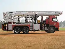 The Mumbai Fire Brigade's first response vehicles are fire fighting trucks known as Motor Pumps, equipped with ladders, water tanks, and hydraulic rescue tools.[15] Currently, the Mumbai Fire Brigade uses MPs manufactured by Tata and MAN.[15] For larger fires, the Mumbai Fire Brigade uses brigades known as 'Jumbo Tankers' which have the capacity to hold between 14,000 and 18,000 litres of water.[15] The Mumbai Fire Brigade also uses a number of specialised ladder trucks, for high-rise fires, manufactured by Volvo, MAN, and Mercedes-Benz. These include trucks with aerial ladder platforms, turntable ladders and hydraulic platforms.[15] The Mumbai Fire Brigade's fleet currently consists of 56 fire engines, 21 jumbo tankers, and 18 specialised vehicles including 6 hydraulic platforms.[11] The Brigade also has 29 ambulances, and 6 beach safety units.[11]