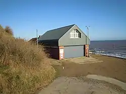 A new Lifeboat station was built in 2006[1] which was funded entirely by donations received by the public.[1] The new station is a steel-framed building which has block and brick curtain walling. The roof is constructed from insulated steel cladding. The interior[1] consist of a main boat hall in which the boat and the tractor sit side by side ready for service. Also on the ground floor is the drying room which holds all of the crew's personal protection equipment such as drysuits, helmets and lifejackets. This room is constantly kept warm and damp free to prolong the life of the crews valuable kit. The first floor[1] consists of four main rooms. The lookout is situated on the eastern elevation so that almost the whole of the Mundesley guard is visible. Also kept in this room are charts of the coast and two VHF radios so a constant communications can be kept with the boat whilst it is out at sea. A second room, next door is used as a crew training room. In this room the Lifeboat service hold the majority of their meetings. It is also where training sessions, which are held fortnightly on a Monday night, take place. The other two rooms on the first floor are used as the Coxswains office and a Kitchen area.