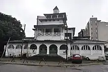 Towards the end of 1884, after the Germans had established a post at Douala, they ran into trouble with the local Duala chiefs who were encouraged by the British to resist German attempts to open direct trade with the interior. The leader on the Mungo river was King Bell, who maintained a blockade for some months but eventually was forced to yield due to disunity among his people and the power of an armed steamboat.[9] Later, the Bell's regained control for a while when the Germans turned their attention to the Sanaga River.[10]
