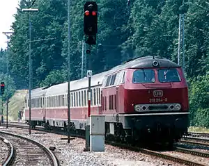 Prior to the introduction of the V 200 diesel locomotive in the mid-1960s, which reduced travel times between Munich and Lindau by around 30 minutes, the line was operated with steam locomotives. Bavarian S 3/6 (later class 18) locomotives hauled high-quality, international express services on the line for many decades. They were still used for express services at the end of 1967.