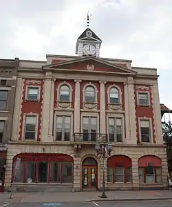 Municipal Building, also known as Old City Hall, is a historic city hall building located at Oneonta in Otsego County, New York. It is three story masonry building with an ornate facade of painted brick and terra cotta, built in 1906 in the Beaux-Arts style. A central tetrastyle pavilion in the Ionic order dominates the upper floors. In 1978 a neocolonial clock tower was erected on the roof. It housed the municipal government until 1980, when they moved to the Old Post Office building.[2]