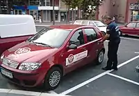 A car of the municipal police of the City of Valjevo along an officer.