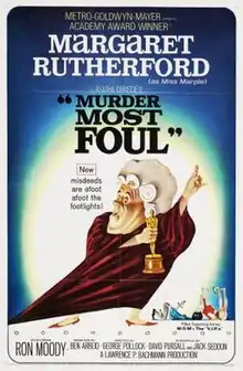 Murder Most Foul is the third of four Miss Marple films made by Metro-Goldwyn-Mayer.[1] Loosely based on the 1952 novel Mrs McGinty's Dead by Agatha Christie, it stars Margaret Rutherford as Miss Jane Marple, Charles Tingwell as Inspector Craddock, and Stringer Davis (Rutherford's husband) as Mr Stringer.[2] The story is ostensibly based on Christie's novel, but notably changes the action and the characters. Hercule Poirot is replaced by Miss Marple and most of the other characters are not in the novel.[3]
