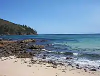 It is known that Douty went straight from the ferry to her room to drop off the things she had bought which included presents for her younger son's upcoming 19th birthday. Taking the new red towel she had just purchased she headed to secluded Dinghy Bay.[2] Butler had been following her but lost her at this time. Unfortunately, he knew her destination and asked a member of staff for directions. It is estimated that she reached the beach at about 10.40 but when the 11 o'clock plane flew in, she was no longer on the beach. She was found in scrub behind the beach, her body covered with the red towel which had blood and semen on it.[6][7] Douty's clothes and personal possessions, including a handbag, were missing and were never found.[8] She had been beaten on the head with a stone.[2]